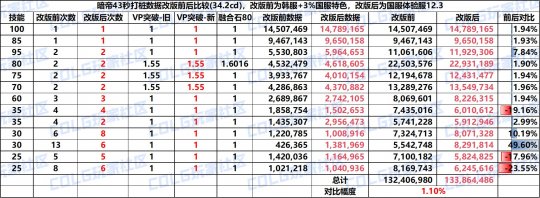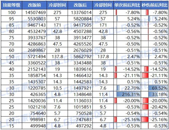 自从周一暗帝的重做曝光以后,新版暗帝的技能数据成为大家关注的热点,各种各样的言论层出不穷,诸如“暗帝越改越废,比原来还差”,“谁玩暗帝我笑谁一年”,“又是驱魔式战法式重做”,“不如不重做“,或许这就是目前论坛生态中唯数据论的一种体现吧,今天也不谈暗帝的形态改版有多好,就只论暗帝重做后的技能数据表现。【“法系一姐”的数据前后对比】 改版前数据为韩服之前上线的职业内部技能数据平衡叠加国服特色3%后的数据。改版后数据为目前体验服公布的暗帝重做数据。从上表可以得出以下个人观点:1、三觉数据被砍7.8%,毋庸置疑是最令人奇怪的,改版前1450万的数据在全职业中也是下游水平,没想到还变得更少了,难道说策划填三觉数据的时候还按照上半年版本来的吗?这点扣10分。2、45以上高阶技能数据基本平调,95数据比较亮眼,增加了5.24%,这点加5分3、40以下数据则调整较大,首先是墨迹囚杀变成爆发瞬斩,虽然形态变好了,但数据减少14.52%,功过相抵;镜子减少了21.11%伤害,形态变好也无法接受,这点扣5分;狂怒变瞬爆,数据不变但有个多倍体VP,这点加5分;两个30超级加强,数据形态均变好,这点加10分;两个25形态加强,但数据均减少20%,这点扣5分;两个20一般不点,影响不大。综合来说,40以下小技能方面总的加5分。综合三觉、高阶技能、低阶技能三个方面来说,暗帝的数据个人打分为功过相抵,与重做前没多大差别【“法系一姐”的打桩表前后对比】要比较暗帝的数据,打桩表环节必不可少,由于缺少相同的测试环境,我们不讨论普攻的伤害,只讨论纯扔技能的情况,以下为改版前后的打桩表对比: 打桩表解释:技能加点均为省略了秒伤较低的45和40级技能,然后35凝爆使用了多倍体VP(如果操作得当是可以打3次的)。从打桩表的前后对比能看出来,重做后的暗帝由于超模的双30技能,从而逆转了三觉和部分小技能带来的劣势。但是重做前后两者数据个人认为半斤八两,国服更多的还是爆发环境。暗帝在全职业排名情况是下游水平,重做后如果维持这个数据水平,是掀不起什么风浪的。不管咋说,策划花了这么多功夫重做暗帝,如果不把数据拉到中游以上水平的话,还特定弄个暗帝养成活动干嘛呢?(永远的法系一姐)更新一版,12.3数据: (来源:colg) |
