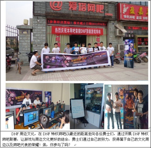 【精彩回顾】: ![]() 【赛事支持】: DNF特权网吧,开启网吧赛事新高峰。也许在同一个网吧游戏的我们平时在不同的大区,彼此之间交流经验,惺惺相惜,演绎着自己的精彩。但是今天特权网吧可以把你我凝聚在一起,跨越大区限制,同台竞技,以武会友。告知你身边的网吧这个消息,让我们在身边的网吧里一起同台竞技,大区限制不住我们格斗的激情,让我们一起挑战新的格斗极限。 DNF特权网吧-助您畅游地下城,在特权网吧内游戏即可免费享受:任务助手、HP/MP恢复、免费虚弱回复、同吧组队免COF值增长。DNF特权网吧作为阿拉德勇士训练营-力求让玩家在网吧内有一个良好的游戏氛围,以达到网吧多元化经营为效果的目的。还等什么?赶快加入特权网吧的行列吧!! DNF特权网吧全国招募: http://dnfcity.qq.com/netbar/gamePrivilege.html DNF周边商城: DNF特权网吧查询: |
