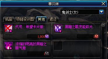 DNF代号希望在体验服当中开启,该副本需要抗魔值在4000以上,入场消耗疲劳值4点,每个各地区消耗疲劳值为4,可以通过该副本得到道具【黑暗之眼灵能碎片】。 DNF代号希望地图图片 同时新的NPC赛贝琳出现,她的功能包括了:成品兑换、项链设计图兑换、其他兑换以及退换功能。 DNF代号希望未来会实装正式服务器,期待该地图带来新一轮的刷图热潮。 |