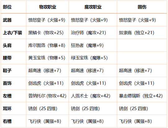 自新版本改版以来,格兰迪砖厂已经正式倒闭,搬砖主战场转向钢铁之臂和全蚀市场。对于不少回归玩家来说,搬砖装备仍旧停滞在格兰迪时代,急需有新鲜血液的装备注入。因此,笔者就根据自己多年搬砖经验,就装备方面提出一些自己的见解,希望能帮助到大家。 一、 泰波尔斯系列装备:顶级搬砖装备 现在获取泰波尔斯装备的方式有很多,如果角色拥有一套泰波尔斯装备,那搬砖速度提升会非常显著,完全不需要考虑伤害不足的问题,主要考虑三速即可。 如果角色专为搬砖而生,那选择精灵的荣耀套一定是最佳选择;苍穹之云和永恒的季节三速也不错,精灵的荣耀装备不多的角色可以选择这两套;幸运的五彩石和亿万年的星光的三速加成太少,不推荐用来搬砖。 二、 哈林装备:解决伤害不足的问题 如果成套泰波尔斯装备获得难度较高,那可以选择哈林装备。哈林装备的获取难度较低,坚持每天挑战黎明裂缝与强袭模式可快速成型。成套的哈林装备搬全蚀市场王者级还是轻松加随意的。 哈林防具中,笔者推荐灵魂拷问套装(轻甲)与兵法之神套装,前者能提供不错的伤害与三速,很契合搬砖的需要;而兵法之神套更适合帕拉丁,念帝等搬砖职业,在搬砖的同时还能混团,一举两得岂不美哉? 首饰方面,如果伤害足够的情况下推荐贤者之欲套装,毕竟有三速的加成;帕拉丁,念帝等搬砖职业可选择流逝轮回的记忆套装,方便混团。 三、 艾肯套:查漏补缺的好帮手 无论是泰波尔斯套还是哈林套,在未集齐5件套装效果都很鸡肋;因此选择艾肯套来填补空白是非常好的选择! 伤害不够补属强和三攻都可以;伤害够的情况下,全速艾肯将带你体验飞一般的搬砖速度,谁用谁知道。冒险团商店中也可兑换艾肯材料,建议优先选择耳环和左槽进行兑换。 四、 搬砖强力单件 通过异界获得,难度非常低,一双鞋子提供了12的移速以及8%的双爆,非常适合搬砖刚起步的角色使用。 血色残阳三件套,对三速的提升还是很不错的,可惜伤害欠佳。推荐搬钢铁的玩家选择。 超适合搬砖,可惜价格高昂,若不是长期搬砖可考虑用艾肯替代。 搬砖神器,可惜价格价格超贵,适合长期搬砖的玩家考虑,基本一个月回本。 寻龙诀在歌兰蒂斯处可以封装,需要48个传说灵魂;如果玩家们不缺传说灵魂,那完全可以先购买使用,等到不搬砖了再将其封装卖掉。 老玩家才有的绝版称号,选择搬砖角色时尽量选择有此称号的吧,会增加不少收益。 总结: 以上便是本文的全部内容,皆为笔者自身的一些搬砖心得体会,希望能帮助到有需要的人。关于武器方面,有哈林武器甚至泰波尔斯最好,若没有可以考虑打几天安徒恩做一把荒古武器,对搬砖来说还是很不错的。 伤害若是不足,可以考虑每天打下异界完善下基础换装,还可以完善一下基础附魔,笔者也给大家整理了一些基础附魔,如下: 尽量买卡片找附魔商店附魔,这样能节约不少钱。 最后感谢大家的观看,祝大家新春快乐! |
