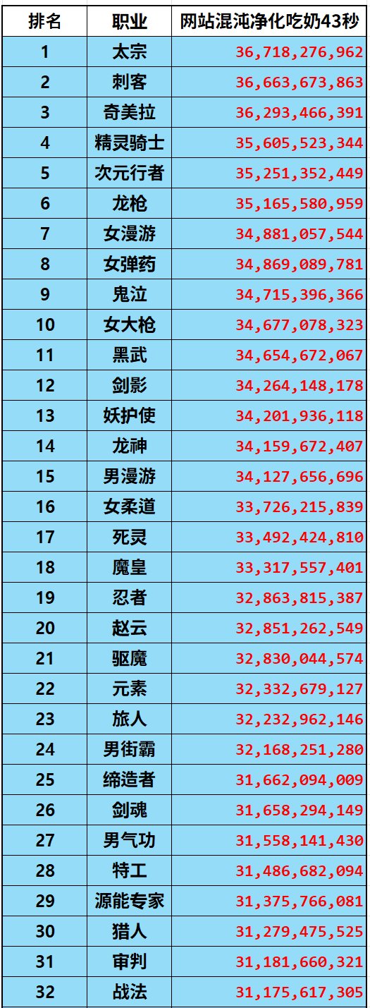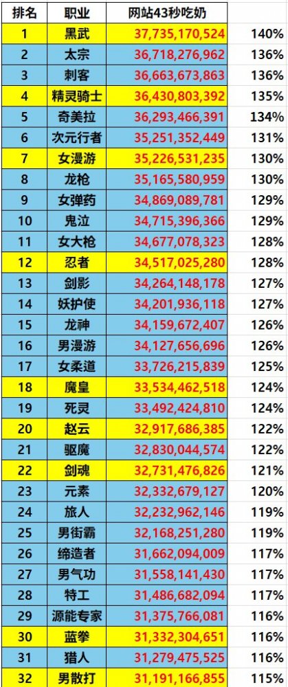 正式服更新2天以后抽各职业黄金乡前三名和混沌净化前三名统一装备,统一增幅武器红13,全身红12,通宝毕业补正技能加点网站最佳化,黄色是黄金乡高,蓝色是混沌净化高网站43秒,统一奶量组队120级白沙袋不破招 综合装备排名 黄金乡 混沌净化 (来源:colg) |