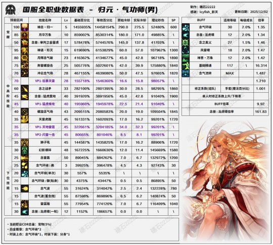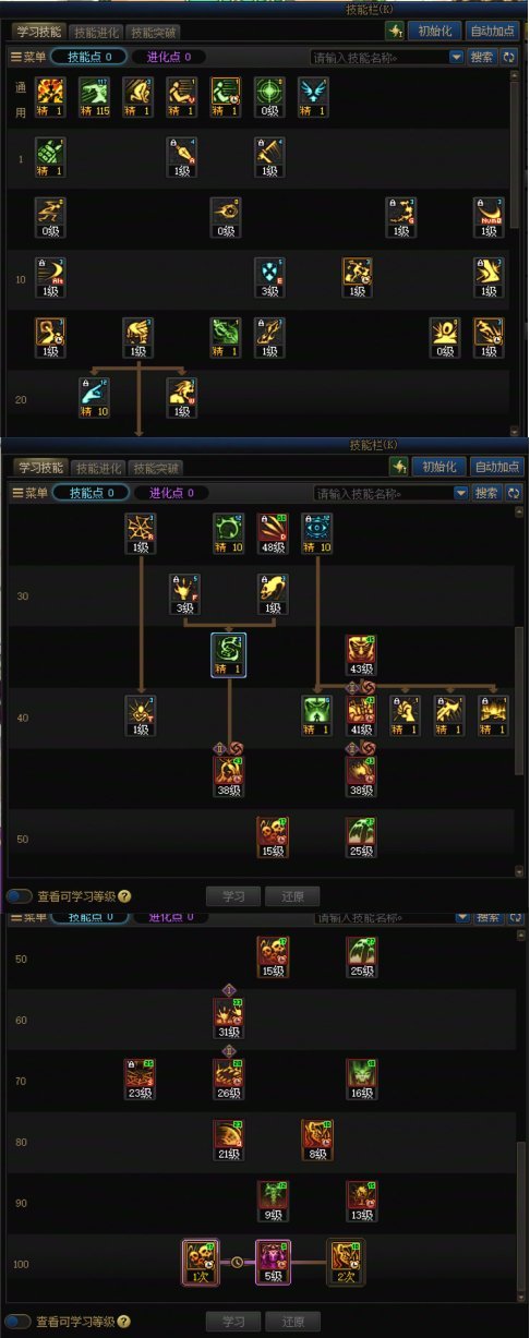 对于数量不少的职业来说,都应该至少放弃70,75,80的其中1个(点1或者6-7级不等),去点要么(1)高单次的低阶无色,或者(2)高秒伤但是单次也不低的小技能。强调:不是塞蛋!不是塞蛋!不是塞蛋!这种加点策略之下,5/10/15s爆发只需要多按1-2次技能指令,43s也不过2-4次就能获得比传统加点更高的收益。 摘要 长久以来,dnf的加点都是基于要么形态,要么秒伤,或者单次伤害进行取舍,但是sp效率的问题缺鲜少提及。这篇攻略意在说明如何通过更好利用sp来同时增长爆发和续航伤害且不过量增加操作。到最近为止,dnf通常的加点策略是非有则无,即,要么点满要么不点或为了功能点1。但是,最近通过dnf召唤小熊以及他人的加点策略,让我意识到分段式的加点可能对于sp的利用更加有效。再次基础上,这篇攻略把这个策略进行详细拓展,宽化至绝大多数职业,以及细节的取舍办法。结论为对于数量不少的职业来说,都应该放弃70,75,80的其中1个(点1或者6-7级不等),去点要么(1)高单次的低阶无色,或者(2)高秒伤但是单次也不低的小技能。 sp效率 首先sp效率这件事情由来已久,最常见是世界boss之前的45,改版之前在115版本需要2280sp加满。于此同时,相当多的小技能都只需要1000sp或者更少。于是就会出现加满45不如加满两个小技能或者一个中阶+小技能打伤害打的多情况,甚至有时候45单次都会小于另外两个技能之和。所以一个45换两个其他这件事在世界boss之前是相当普遍的。所以为什么现在又要重提呢?是因为这种策略可以被提取出更普遍的形式。我们可以把每个技能理解成一个把sp转换成伤害的函数。比如上面那个例子 注意到我们此处不再讨论加满或者不加满,而是直接讨论每个技能使用了多少sp。此处只是假设了一个正好900sp加满25和1380sp加满了35的例子。于是我们可以立即把这个范式拓展成任何技能。注意到,不等式左右两边没有规定必须是不同的技能等级,所以我们可以假设以下的问题 翻译成大人话就是,有没有可能不把75点满,然后点另一个技能,但是不点满的75和另一个技能加起来却比原来点满的75还要高。如果有,那我们就不应该点满75。比如说满级的35/40/45/60,加上8级的75大于满级的75,在花费相同sp的情况下,我们就应该不点满75,同理适用于70,75,80。去回答这个问题,我们就要找出最佳的a,b分配方法。 技能等级收益 众所周知,dnf技能的增长是一个线性的一次函数,每一级增加1级技能的10%伤害。假设一个技能在1级有100伤害,那么2级就会是110,21级就是300的伤害。以下为了计算收益率方便(不会涉及不同技能之间的比较),我们不妨直接设定所有技能的一级伤害都是1,于是有 (严格来说应该是1+0.1(x-1),因为2级的伤害是1+0.1而不是1+0.2,但是为了方便理解直接对公式进行魔改)于是聪明的朋友就发现了,这样以来每一级的收益就是不一样的。比如说95的满级是13级(115版本,不计算而外特色),点3的伤害是1.1,点满的伤害却只有2.2,我只用了200sp就换到1300sp伤害的一半。同时细心的朋友就会发现了,如果满级的等级越小,那么点1或者不点满的收益就越大。比如说如果我们点1,那么对比满级时(假设p级满级)的收益就会是 小学数学可知,p越大收益越小,p越小收益越大。由此可知,不点满大技能的收益远比不点不点满小技能来的大。结合上一章节,我们的策略就应该是,尽可能加满小技能,少点大技能。 sp花费和可行性研究 由上面的等级收益对比公式(即g(x)/g(p)),我们就可以写出一个sp的花费/效率表 我们可以从这个表看出,70-95的非觉醒技能1级伤害留存率都相当高。虽然95的1级伤害留存率非常的高,但是我们注意到省下的sp并不多,所以我们暂时不做考虑。反观70-80非觉醒,点1就可以保留原来的3成伤害,但是省下的sp加上扣一些小技能或者超额的主动buff等级就可以点满一个原来不点的中介技能。而如果我们选择让70-80打出至少一半的伤害,那省下的sp则可以点满一个小技能。所以我们现在考虑两个问题:大技能和小技能。(1)大技能我们考虑是点满一个不点的40/45/60可否在和70/75/80cd差不多的时间里打出原有伤害的70%以上。小技能(2)小技能首先肯定难以一发打出高阶技能的70,所以我们考虑两发。但是我们要兼顾爆发,所以这个小技能必须要要在短时间内做到2发。考虑到目前输出窗口,短时间规定为10s。所以我们考虑的就是有没有一个小技能10s内两发能打出70/75/80的一半伤害。对于(1)我们要求超过70%,不然只打一样的伤害就是纯纯增加操作量。对于(2)我们可以接受50%,如果10s内爆发总量相同,小技能就是免费送续航。记住(2)并非抓住小技能猛猛塞然后放弃爆发,你只要做到每一个70/75/80之间能打出2发了就是赚,中间打的越多自然就赚的越多。现在我们考虑这玩意的可行性。我们基于礁石表格计算所有职业高阶技能的平均单次伤害(去掉前5和后5取平均)。(1)大技能首先我们注意到,礁石表格是计算了特色等级的,这个时候我们就不能用1级数据去对比礁石表上的“满级数据。”因为就算我们只点1,这1级依然要吃两级特色,所以实际上就会是3级比上23/25/26级。如果我们直接拿1级去对比礁石表的23/25/26级,就会导致显著失衡。由于两级非觉醒技能大约增加6%伤害,所以我会把平均伤害除掉6%。在不算多倍体的情况下,根据礁石的表格,在除去例如瞎子80雷云,合金75等单次难以计算的技能(还有机制特殊的两个外传)所有