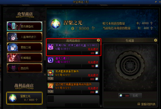 前言 嘉年华版本来袭,包含+13强化券在内的重磅福利好礼大放送!深渊版本临近末期,狄瑞吉团本即将上线,装备获取更加简单,活动赠送毕业太初武器和装备,毕业进度再提速,助力玩家轻松回归追赶进度!同时金秋礼包还在售卖当中,特色附魔属性进一步提升,毕业光环/稀有克隆皮肤等补齐职业特色让伤害更上一层楼。 ---------观望阶段-回归必看-------- └ 回归福利 Q:嘉年华版本到底有啥好福利,值得回归?全新装备积分体系简单易懂,回归也能轻松上手畅玩;全新职业和技能定制系统登场带来全新体验!+13强化券,115级直升黄金胶囊,深渊票*8888,神器天空装扮升级券等众多福利登录就送!贪婪巨龙活动内含太初制式武器、太初首饰自选以及各种毕业融合石自选等道具,能够让回归玩家的角色快速成长追赶进度。 └ 回归成长目标&玩法 回归成长目标简洁明了,无论是刷深渊还是刷周本都是为了追求更高品级的武器,追求更高积分的套装装备即可。武器和套装都抵达太初就算小毕业!之后还可以进一步追求史诗通宝融合石/黑牙装备/秘宝装备。具体玩法可参考【攻略:回归攻略】嘉年华众多好礼,回归/新晋快速毕业玩法指南 ---------起步阶段---------- └升到115级 满级后更换上系统赠送的一身115级稀有装备,赛丽亚处购买的+12传说武器、宠物、光环以及称号后,即可开启全部疲劳无限征战深渊模式。 └一键变换装备 通关深渊我们可以获得许多不同品级、不同套装的装备,这些我们都无需堪忧对比,直接无脑分解即可。 分解后的装备会进入我们背包的装备库里,我们最终只需在装备库里,选取套装等级最高的那一套,进行一键装备变换即可。武器的更换同理,装备变换后,原本装备上的附魔增幅打造等都是会一并继承过去的。 有关115级全新的装备系统的说明,详细可参考:【攻略:装备系统】套装积分调适到底是啥?重力之泉装备系统全科普? ?? ??? └兑换110级融合石 从深渊处我们可以获得许多<迷雾工商协会银币>,点击材料即可打开商店进行兑换。优先兑换110级史诗融合石自选礼盒、虚无之魂,以及深渊票。其次勋章还没有升满级的,可兑换能量核心和超导能量核心进行升级。 不同融合石之间伤害方面基本没有差距,可根据自己对其功能性的喜好进行选择即可。110级融合石中项链和戒指部位存在太初品级,在商店内购买“和:融合石”袖珍罐后随便开一个带着过渡即可。 ---------进阶阶段---------- └ 征讨地下城 征讨地下城可从选择频道或赛丽亚房间右侧传送门处进入。每周四刷新,每周可以从6个征讨地下城中选择其中2个各通关1次。6个征讨地下城根据难度依次划分,对应着不同要求的入场名望,奖励也会随之增加。即你可以将征讨地下城看作是一个消耗30疲劳,一次性产出等同其倍率次数的深渊奖励,同时还会有深渊票进行产出的副本。因此记得刷新以后第一时间打哦! 每周我们仅需根据自身当前的名望选择最适合自身的2个征讨本即可。(若感觉通关有难度的话可以让好友带带,或者考虑参与匹配模式和坐车)具体每个征讨地下城副本入场所需达到的名望参考如下,也可自行根据游戏内最右侧的冒险指南(F7)中的图表达成条件进行查看。 └ 雾神攻坚战 雾神攻坚战从选择频道—攻坚战标签页或赛丽亚房间右侧传送门处可进入,每周六刷新。 雾神攻坚战属于上版本的过气团本,无任何门槛,主要就是用来获取涅槃之光的。对于回归玩家来说,涅槃之光(*ESC-攻坚商店处使用)首选就是兑换深渊票,其次是虚无之魂。 └ 维纳斯军团本 美神维纳斯军团本可从选择频道—军团标签页或赛丽亚房间右侧传送门处进入,每周四刷新。奖励方面与征讨地下城类似,并在此基础上会专属产出115级防具部位的融合石。 我们需要通过打维纳斯军团本将我们的110级防具融合石逐件进行更换为与我们套装装备所对应的神器套装融合石,并收集<丝绸>材料将其升级为史诗品级。在我们的套装积分达到太初以后,再将其转化为通宝融合石进一步提升我们的伤害(*迷雾工商协会银币商店中可购买套装融合石升品转移券)。有关115级防具融合石的介绍,详细可参考:【攻略:维纳斯】全新防具融合携秘宝来袭!融合石强度分析&选择建议维纳斯军团本分为3个难度,区别主要在于2阶段和降临难度下会有保底1个自选部位融合石袖珍罐产出,其他奖励方面则大体相同。同样建议根据自身当前的名望选择推荐名望对应难度进行挑战即可。入场所需达到的推荐名望参考如下。 ---------冲击毕业阶段---------- └ 纳波尔攻坚战 纳波尔攻坚战从选择频道—攻坚战标签页或赛丽亚房间右侧传送门处可进入,每周六刷新。 奖励方面与征讨地下城类似,并在此基础上会专属产出115级首饰和特殊装备部位的融合石、无知之权能残痕。纳波尔攻坚战同样分为3个难度,奖励内容方面可直接参考维纳斯军团本,只是产出的融合石部位及其用于融合石的材料不同而已;无知之权能残痕可用于武器升级进一步提升属性!(115级传说~太初武器均可升级,更换武器后材料可无损返还)纳波尔攻坚战为当前版本的核心团本,如果纳波尔攻坚战组队进不去就先去匹配模式拿奖励(够名望能进就能过!),各难度入场所需达到的推荐名望参考如下。 └ 雾岚黄昏战 雾岚黄昏战同样从选择频道—攻坚战标签页或赛丽亚房间右侧传送门处可进入,每周六刷新。雾岚