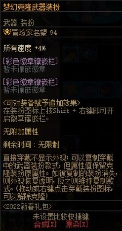 【游戏内正式名字和截图】 装备4种: 梦幻克隆武器装扮,稀有克隆武器装扮; 梦幻克隆皮肤装扮,稀有克隆皮肤装扮。 (不好意思不懂龙武——神器克隆武器装扮) 跨界1种: 装扮邮递装置(普通/高级/稀有)。 变更道具5种: 装扮属性调整箱(稀有), 精致的克隆武器装扮变换器, 精致的克隆皮肤装扮变换器; (这俩变换,主要作用是升级,所以贵) 稀有克隆武器装扮技能等级变更券, 稀有克隆皮肤装扮技能等级变更券。 (这俩本期免费,因为刚刚改了职业内部技能强度,应该的) 【最关键的区别】 克隆武器装扮,没有职业大系之分。 (普通武器装扮,有职业大系之分,有标注。) 克隆皮肤装扮,有职业标注(比如,魔法师(女)缔造者可以使用)。 因此武器可以跨界,还能跨大系修改技能等级,消耗礼包道具。 而皮肤,职业大系不对,带不上,跨不了,花钱也改不了。 跨不了的说明如图,记忆里是几年前的改动,官方特意做的。 另外关于徽章,徽章转移器,打徽章再跨界,这些事楼主不懂了。 【变更3种】 1、如果想要55智力变更为55精神,只需使用:装扮属性调整箱(稀有), 这个各种活动经常送,不必花钱/花费礼包材料。 2、如果想要35技能+1变更为80技能+1,则需要:稀有克隆武器/皮肤装扮技能等级变更券。 3、如果把克隆【武器】跨给了给其他大系,想要技能+1变更职业大系,比如女法四个75+1→女枪四个75+1, 则需要:精致的克隆武器装扮变换器,变了职业,再用100金币的自选等级——稀有克隆武器装扮技能等级变更券。 (变换器只能变为当前角色的技能。先跨界再变换√) 注意,皮肤做不到这种操作,因为已经限制了职业大系“光职者男可以使用”,禁止跨界: (来源:colg) |